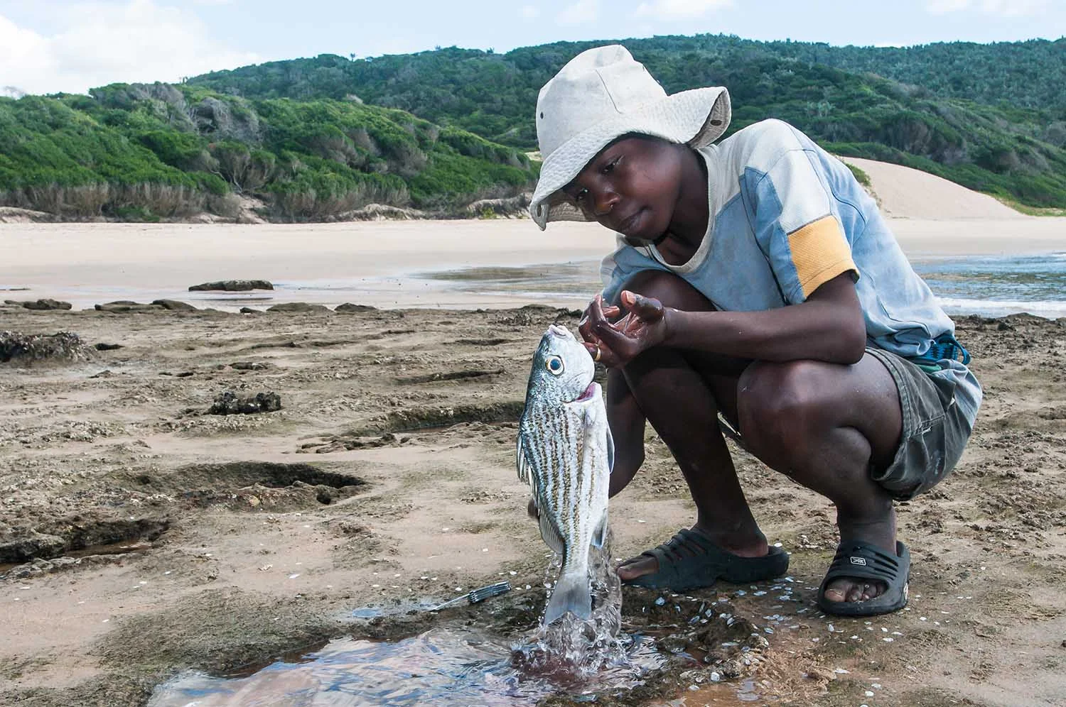 This 10 700 km2 MPA is home to coelacanths, fish that have been around since the dinosaurs. The original Maputaland and St Lucia MPAs were proclaimed in the 1970’s to protect the nesting grounds of leatherback and loggerhead turtles and the beautiful coral reefs enjoyed by thousands of local and international scuba divers. The offshore expansion was proclaimed in 2019, which protects the homes of the most accessible coelacanth population on the planet. Thirty three individual coelacanths, each recognised by their distinct spot patterns, live in this MPA. Whale sharks, manta rays, marlin, broadbill swordfish, thresher sharks and even giant sawsharks visit the deep canyons. These areas (40 to 2200 m) are home to dense fields of seapens, soft corals adapted to living in mud and sand, bands of delicate bird's nest glass sponges and rocky cliffs with giant branching sponges that cascade down steep walls. The deep soft sediment provides homes for spider crabs and deep water rock lobsters, species that are caught by fishermen south of the MPA and in Mozambique.